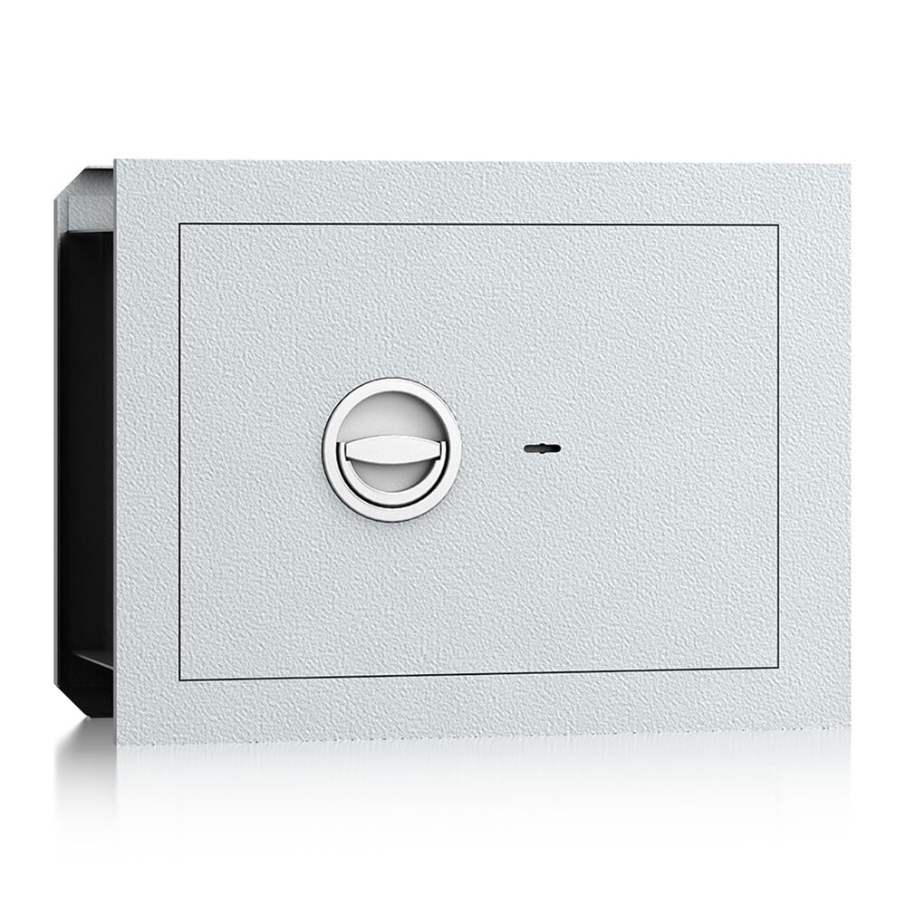 Einwandiger Korpus mit Schutz vor Herausreißen des Tresors aus der Wand. Die starke, doppelwandige Tür mit dreiseitiger Verriegelung und innenliegenden Scharnieren bietet einen ausgezeichneten Schutz.